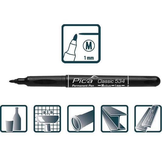 Pica Permanentmarker 1-4mm, Rundspitze, schwarz