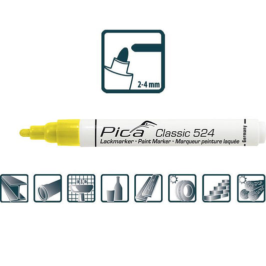 Pica Lack-/Industriemarker 2-4mm, Rundspitze, gelb