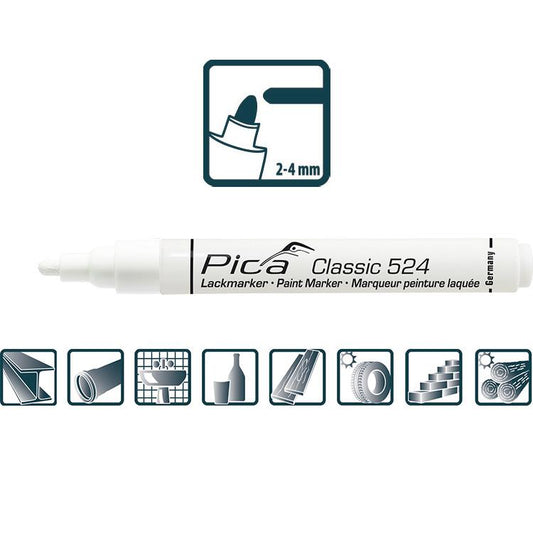 Pica Lack-/Industriemarker 2-4mm, Rundspitze, weiß