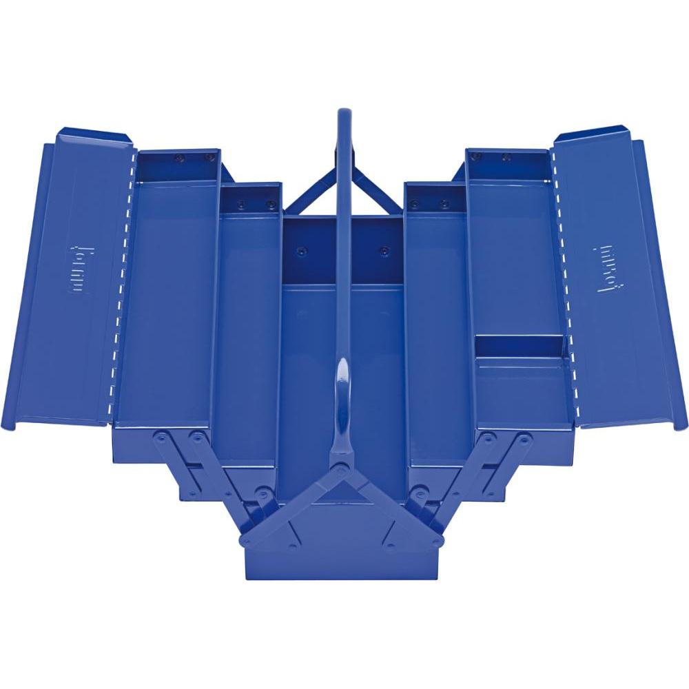ank seiner robusten Stahlblechkonstruktion ist der Werkzeugkasten extrem langlebig und bietet optimalen Schutz für Ihre Werkzeuge. Der umlegbare Tragebügel ermöglicht es Ihnen, den Kasten bequem zu transportieren, während der automatische Verschluss sicherstellt, dass Ihre Werkzeuge immer sicher verstaut sind.