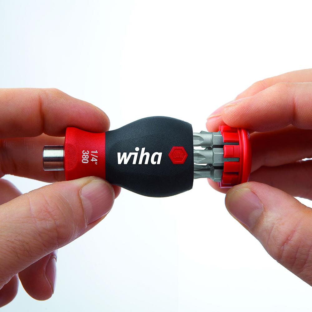 Der Magazin-Bithalter Stubby von Wiha ist ein vielseitiges Werkzeug für alle gängigen Verschraubungen. Mit seinen sechs 25 mm langen Bits, die im SoftFinish Mehrkomponenten-Griff untergebracht sind, ist er besonders im mobilen Einsatz eine attraktive Alternative zum Schraubendrehersatz. Die magnetische Haltefunktion des integrierten Bithalters sorgt für eine einfache Handhabung und einen optimalen Halt der Bits.